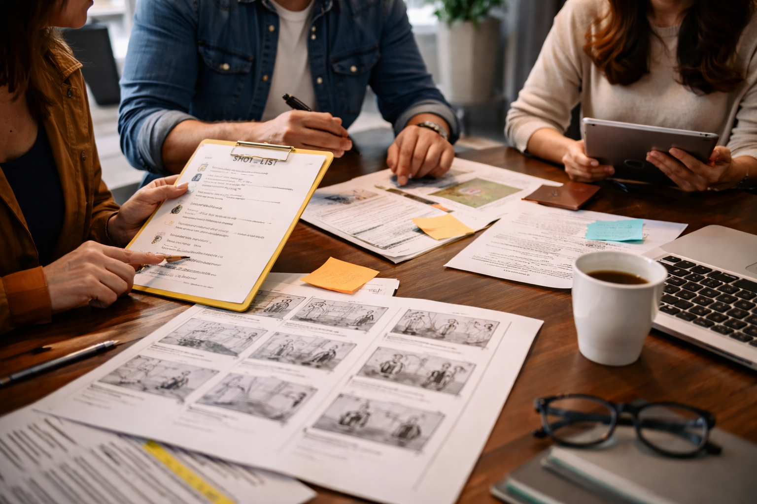 Every project starts with pre production planning, including key elements like storyboarding and script development. We work with you on script writing, shot lists, location scouting, and scheduling. Scouting the location is critical to success, as it helps us address potential challenges before the shoot day. This pre production phase is where we craft the story, develop the concept, and lock down creative direction so there are no surprises on shooting day.