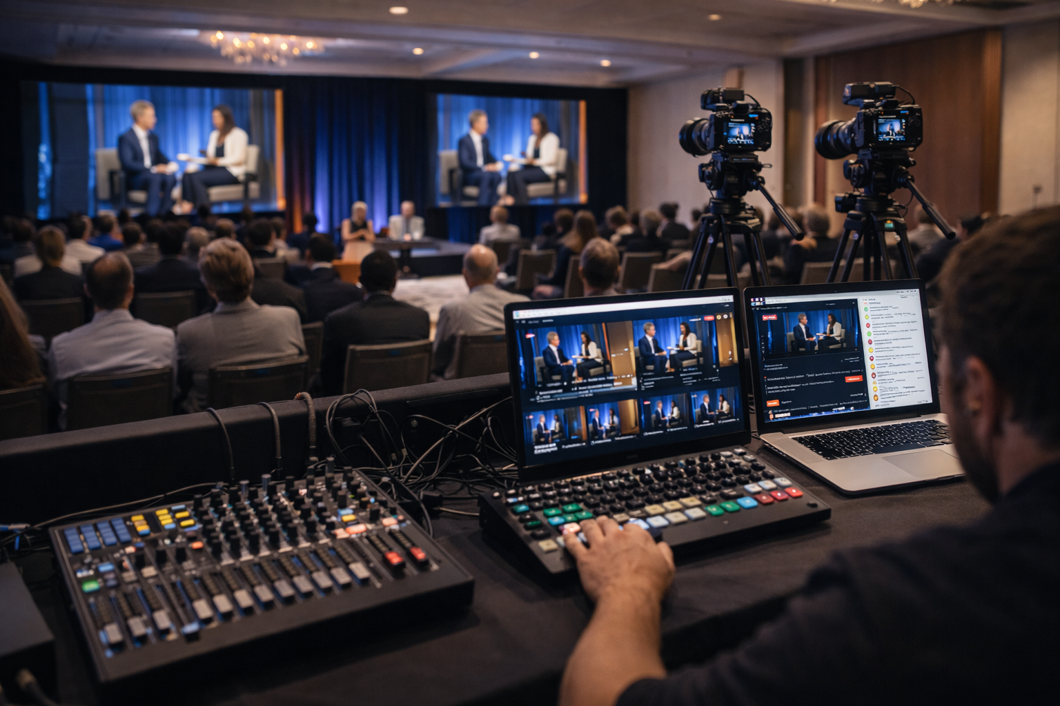 Our event coverage services go well beyond basic stage coverage. Live video production is essential for virtual, remote, and hybrid events, ensuring your message reaches both in-person and online audiences. Hybrid events combine in-person and virtual elements to reach a broader audience and maximize engagement.